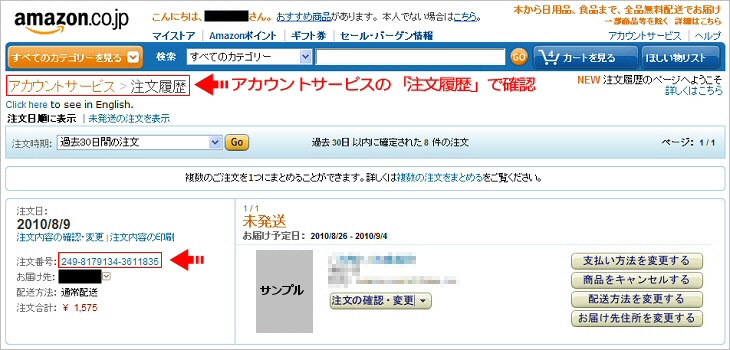 ※注文番号はアカウントサービスからすぐ確認することが出来ます。